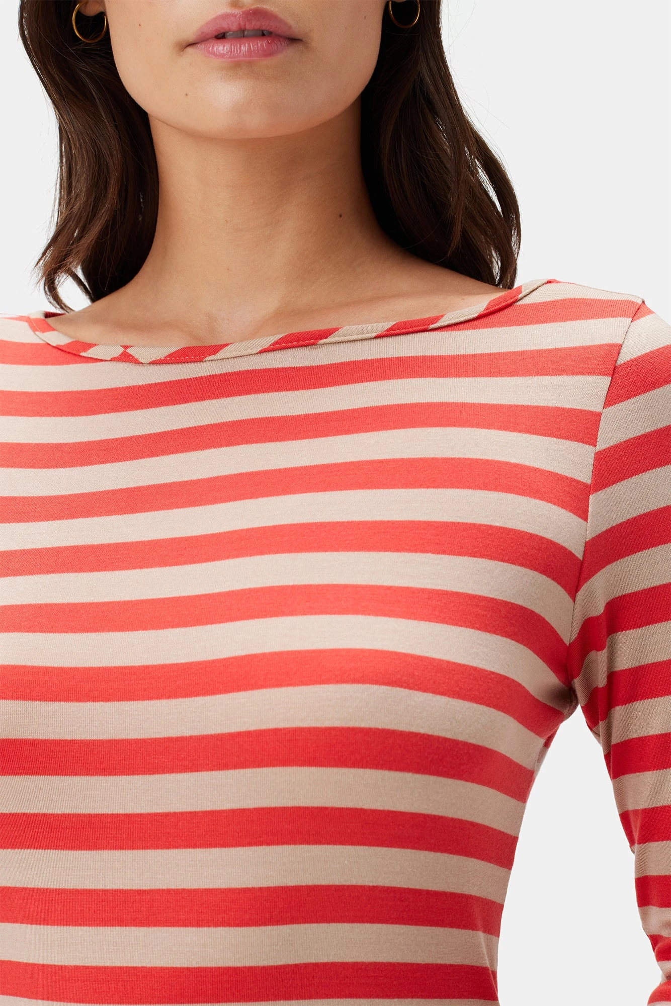 Be the first to review “Francoise 3/4 Sleeve Dream Knit Tee – Tangerine Stripe” Cancel reply