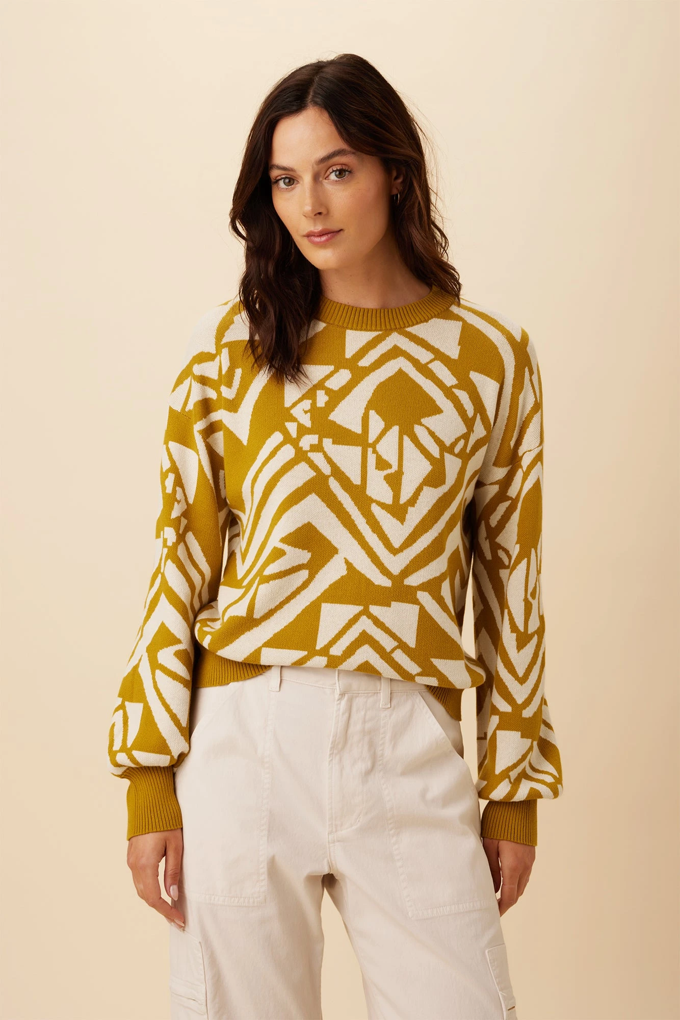 Galya Organic Cotton Sweater – Chartreuse Ivory