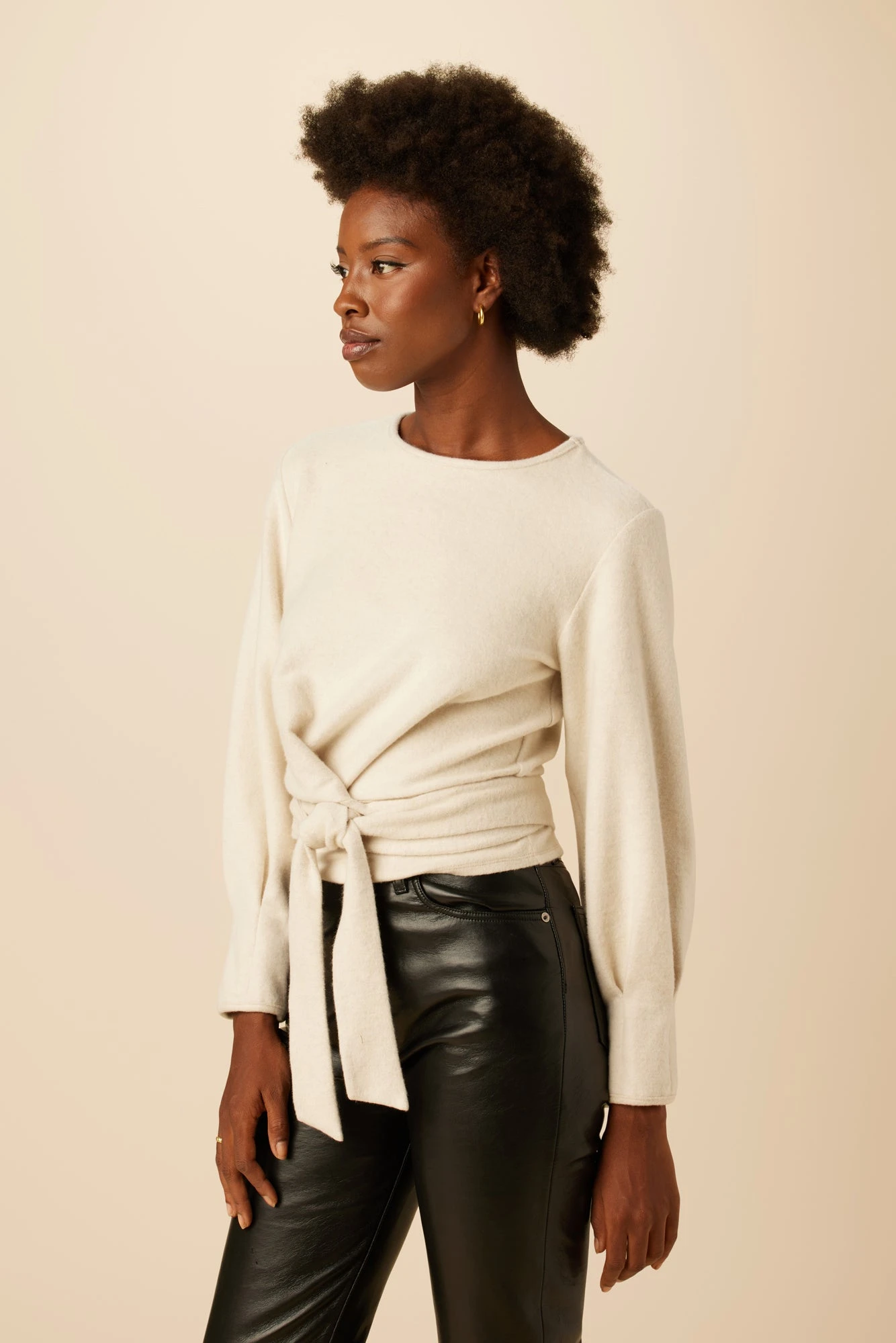 Made from our ultra-soft Nouveau Fleece, this slim-fitting crew neck top features an adjustable waist tie for the perfect fit. The cropped length pairs well with high-rise denim or skirts.