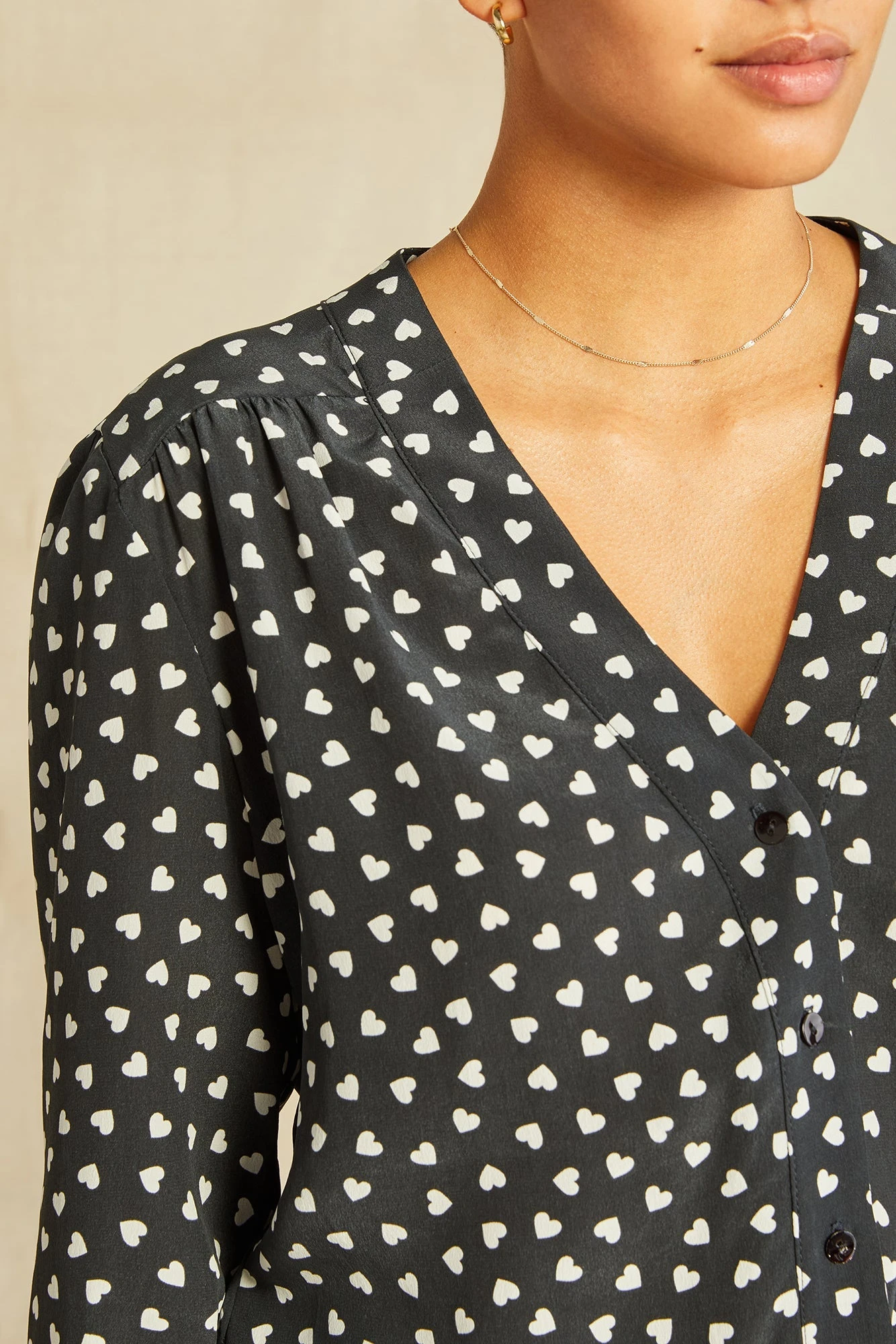 Kaya Washable Silk Blouse – Heart Black Ivory Print