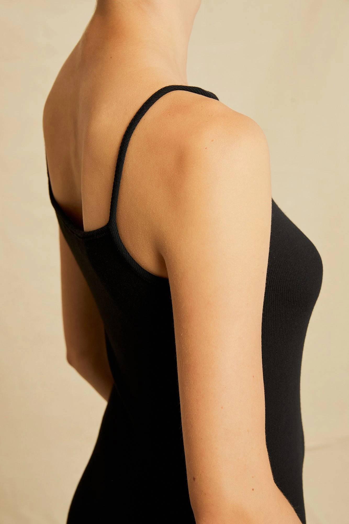 Made in our silky-smooth and textured Dream Rib, this midi dress has fixed straps and two side slits.