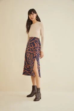 Colombe Scallop Knit Dress – Azure Umber Stripe