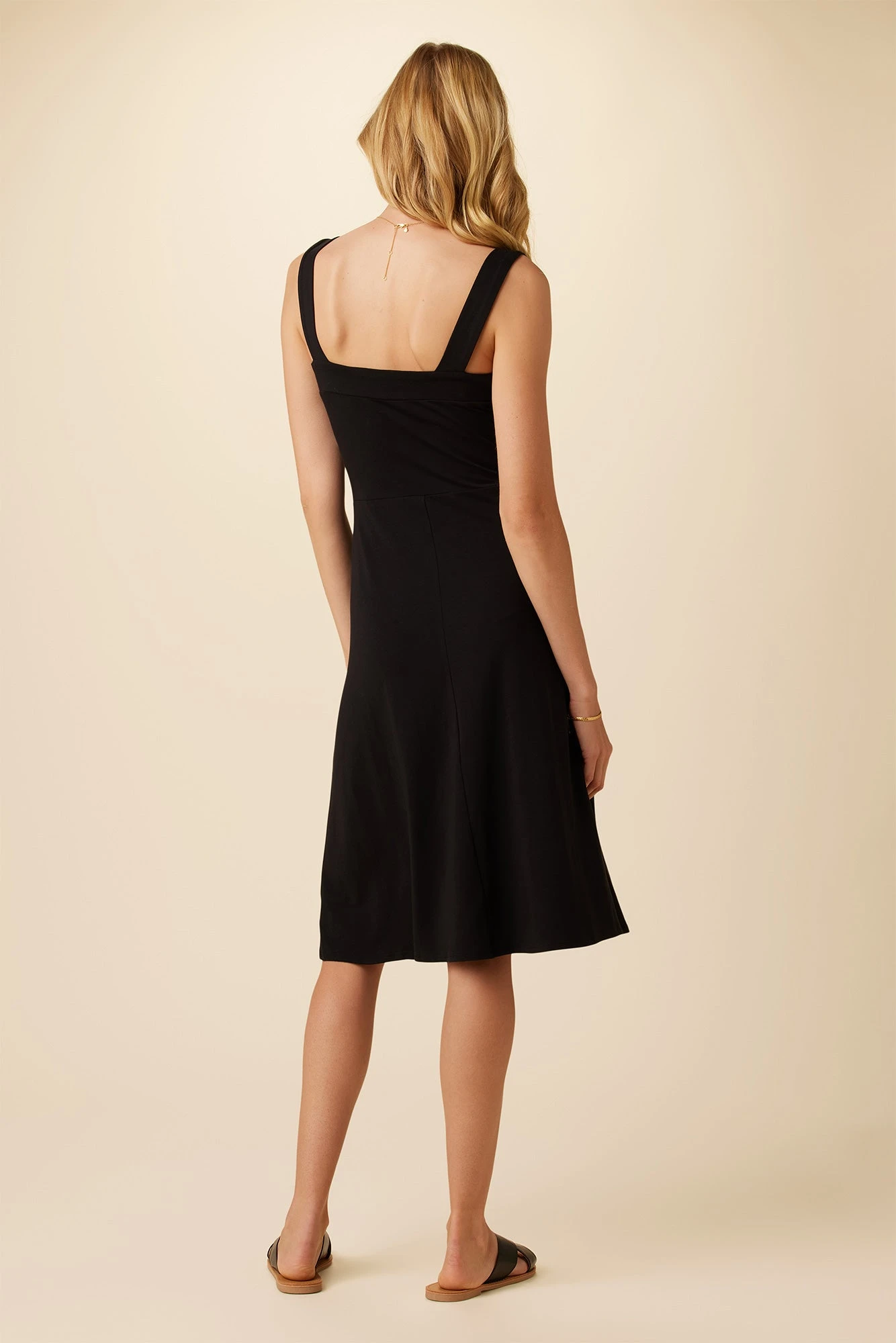 Midi length dress featuring slim fitting bodice with seam details and an a-line skirt. Made in our luxe Reverie Knit fabric, this easy dress is as comfortable as it is flattering.