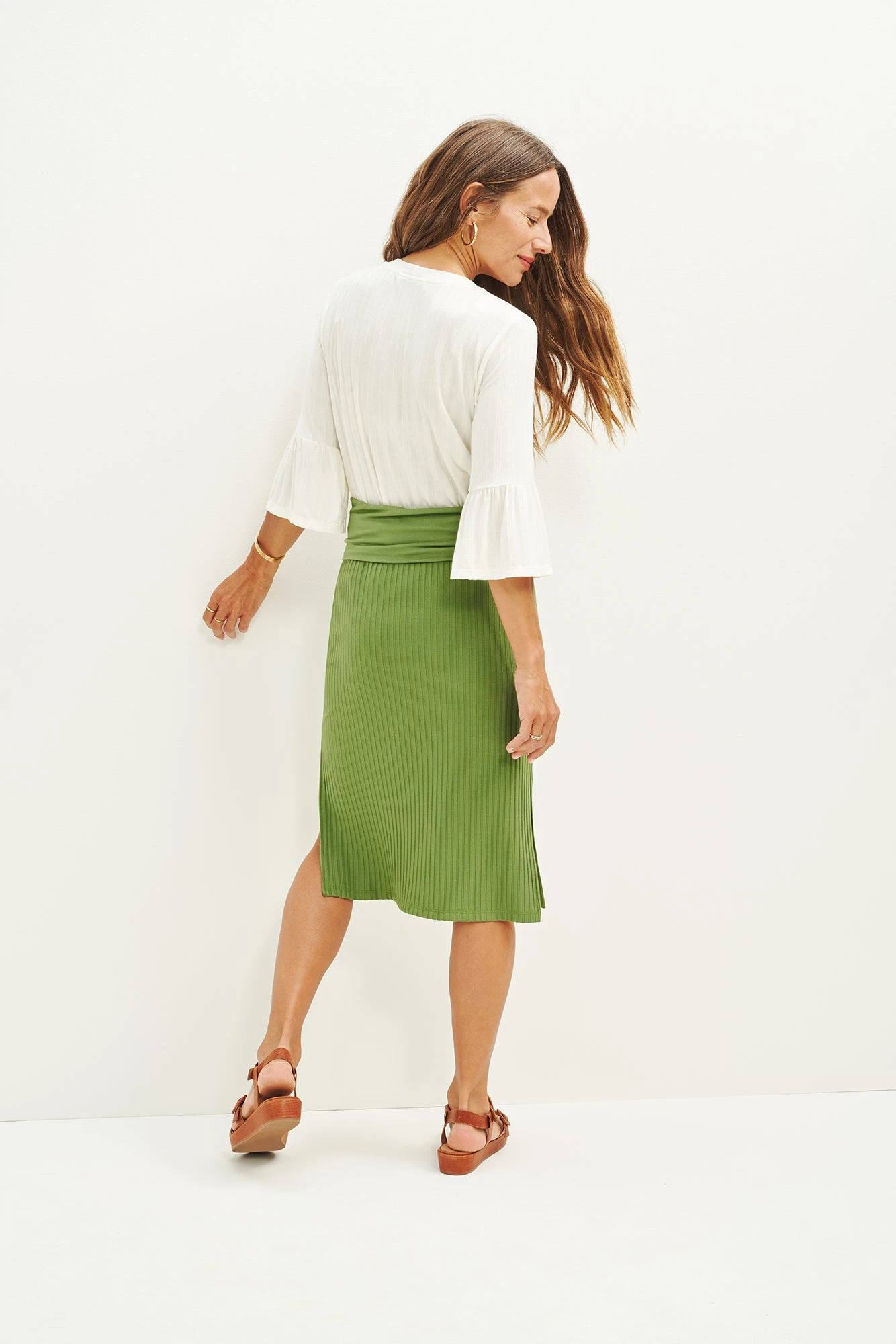 The perfect skirt *does* exist in our luxuriously soft Riviera Rib, a textured fabric made from sustainably harvested beechwood tree fiber.